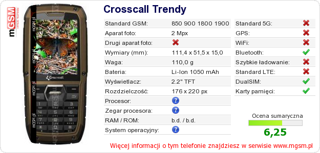 Dane telefonu Crosscall Trendy na Twojej stronie
