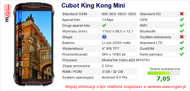 Dane telefonu Cubot King Kong Mini na Twojej stronie