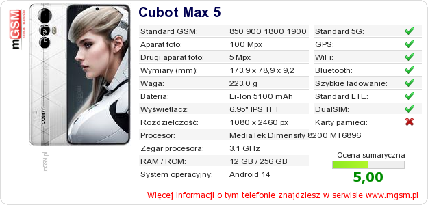 Dane telefonu Cubot Max 5 na Twojej stronie
