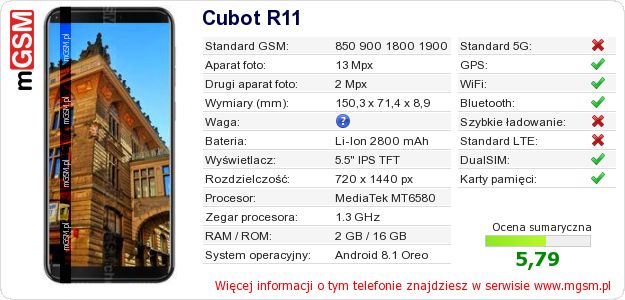 Dane telefonu Cubot R11 na Twojej stronie