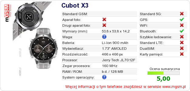 Dane telefonu Cubot X3 na Twojej stronie