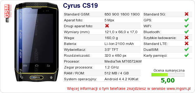 Dane telefonu Cyrus CS19 na Twojej stronie