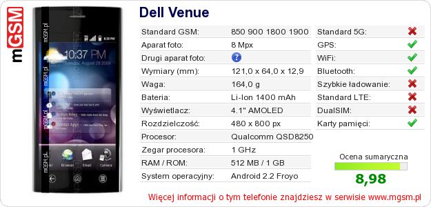 Dane telefonu Dell Venue na Twojej stronie