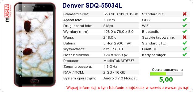 Dane telefonu Denver SDQ-55034L na Twojej stronie