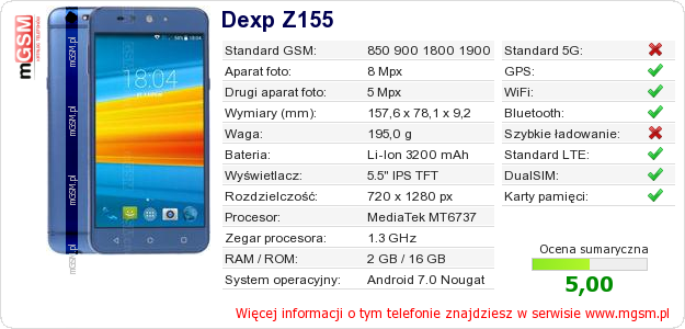 Dane telefonu Dexp Z155 na Twojej stronie