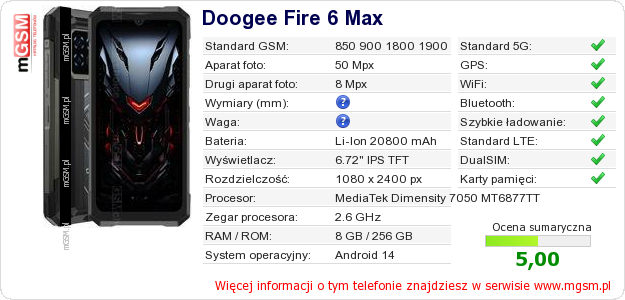 Dane telefonu Doogee Fire 6 Max na Twojej stronie