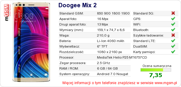Dane telefonu Doogee Mix 2 na Twojej stronie