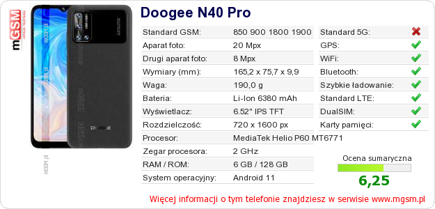 Dane telefonu Doogee N40 Pro na Twojej stronie