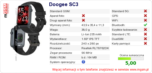 Dane telefonu Doogee SC3 na Twojej stronie
