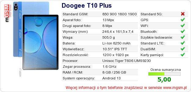 Dane telefonu Doogee T10 Plus na Twojej stronie