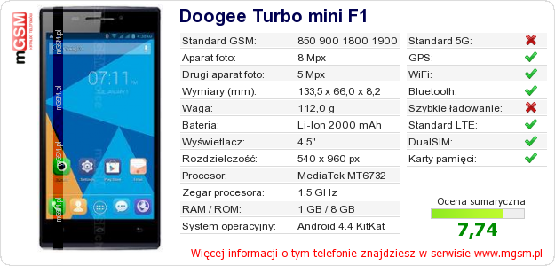 Dane telefonu Doogee Turbo mini F1 na Twojej stronie