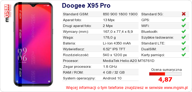 Dane telefonu Doogee X95 Pro na Twojej stronie