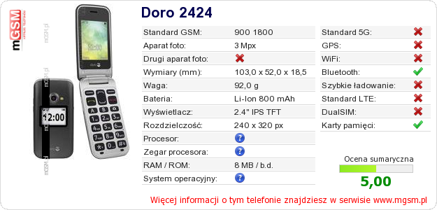 Dane telefonu Doro 2424 na Twojej stronie