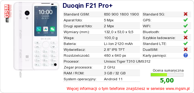 Dane telefonu Duoqin F21 Pro+ na Twojej stronie