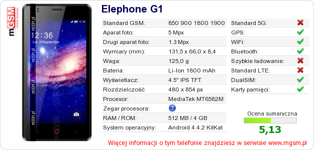 Dane telefonu Elephone G1 na Twojej stronie