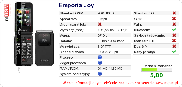 Dane telefonu Emporia Joy na Twojej stronie