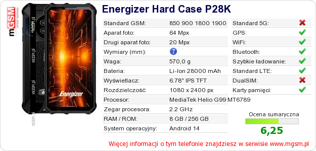 Dane telefonu Energizer Hard Case P28K na Twojej stronie