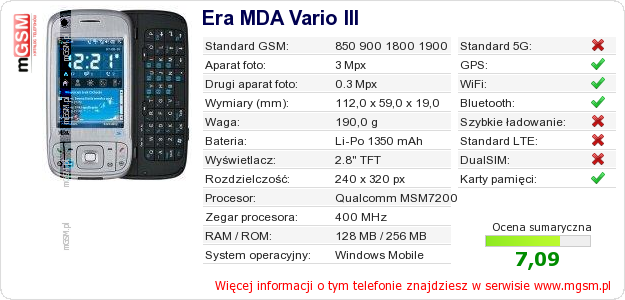 Dane telefonu Era MDA Vario III na Twojej stronie