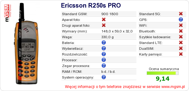 Dane telefonu Ericsson R250s PRO na Twojej stronie