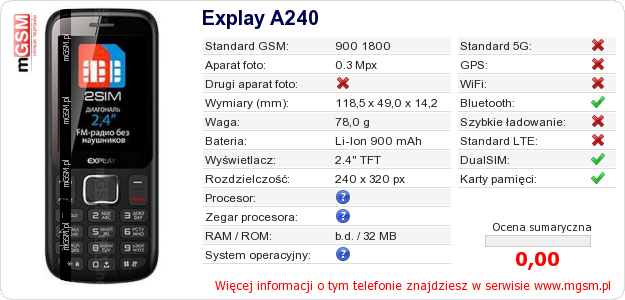 Dane telefonu Explay A240 na Twojej stronie