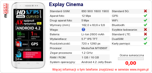 Dane telefonu Explay Cinema na Twojej stronie