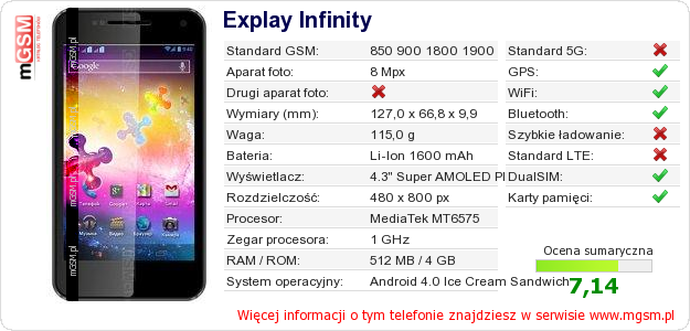 Dane telefonu Explay Infinity na Twojej stronie