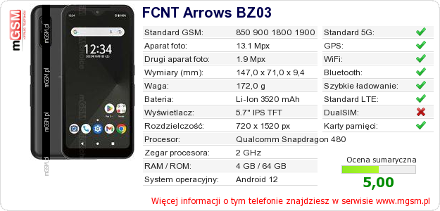 Dane telefonu FCNT Arrows BZ03 na Twojej stronie