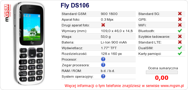 Dane telefonu Fly DS106 na Twojej stronie