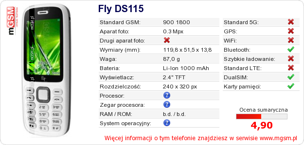 Dane telefonu Fly DS115 na Twojej stronie