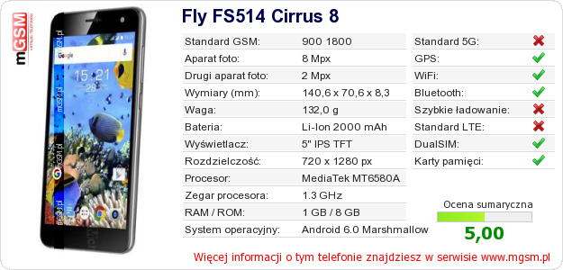 Dane telefonu Fly FS514 Cirrus 8 na Twojej stronie
