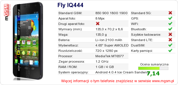 Dane telefonu Fly IQ444 na Twojej stronie