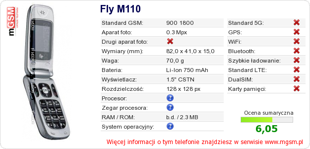 Dane telefonu Fly M110 na Twojej stronie