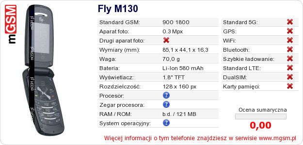 Dane telefonu Fly M130 na Twojej stronie