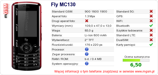 Dane telefonu Fly MC130 na Twojej stronie