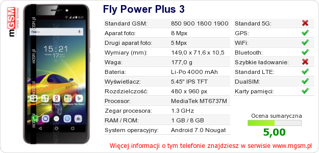 Dane telefonu Fly Power Plus 3 na Twojej stronie