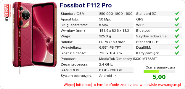 Dane telefonu Fossibot F112 Pro na Twojej stronie