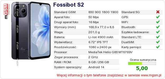 Dane telefonu Fossibot S2 na Twojej stronie