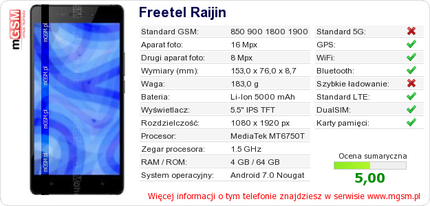 Dane telefonu Freetel Raijin na Twojej stronie