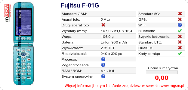 Dane telefonu Fujitsu F-01G na Twojej stronie