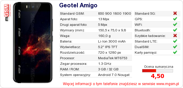 Dane telefonu Geotel Amigo na Twojej stronie