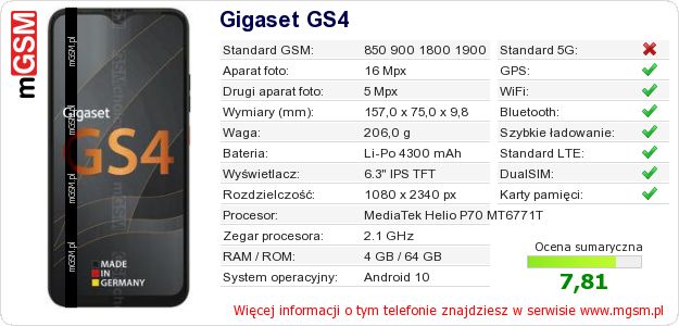 Dane telefonu Gigaset GS4 na Twojej stronie