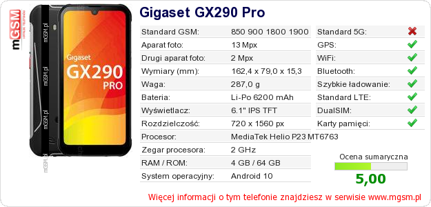 Dane telefonu Gigaset GX290 Pro na Twojej stronie