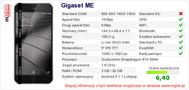 Dane telefonu Gigaset ME na Twojej stronie