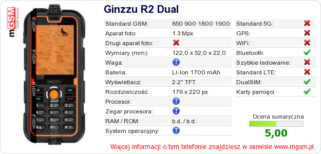 Dane telefonu Ginzzu R2 Dual na Twojej stronie