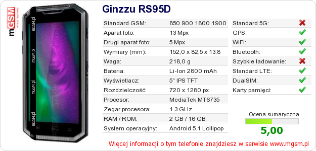 Dane telefonu Ginzzu RS95D na Twojej stronie