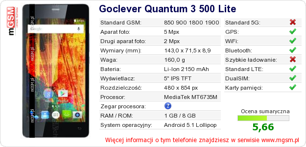 Dane telefonu Goclever Quantum 3 500 Lite na Twojej stronie