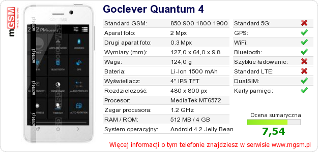 Dane telefonu Goclever Quantum 4 na Twojej stronie