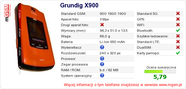 Dane telefonu Grundig X900 na Twojej stronie