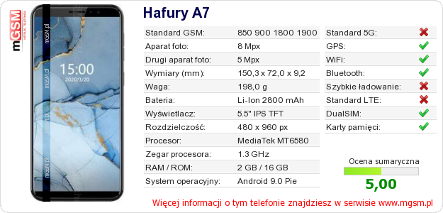 Dane telefonu Hafury A7 na Twojej stronie