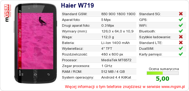 Dane telefonu Haier W719 na Twojej stronie